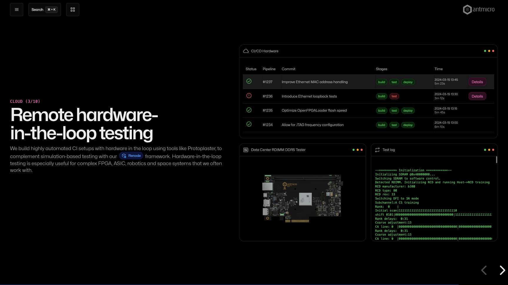 Antmicro is a software-driven tech company providing development services, platforms, know-how and guidance to customers looking to innovate by applying new technological developments in hardware, software, FPGA, ASIC and edge-to-cloud AI systems.