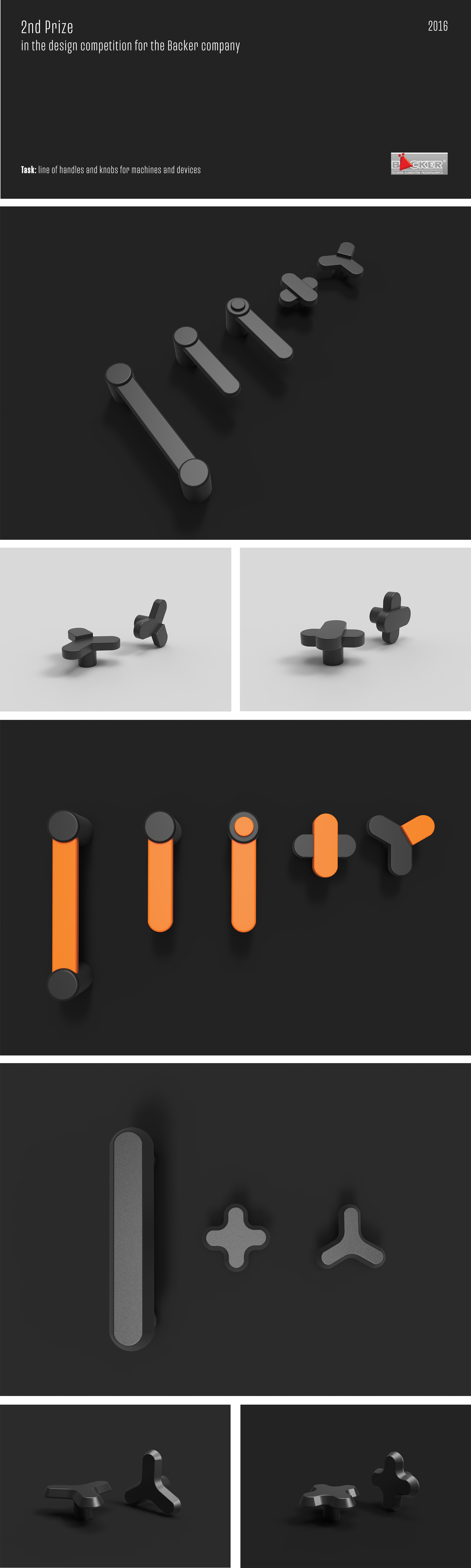 A collection of ergonomic device handles designed for a competition organized by Backer. The project received the second prize.